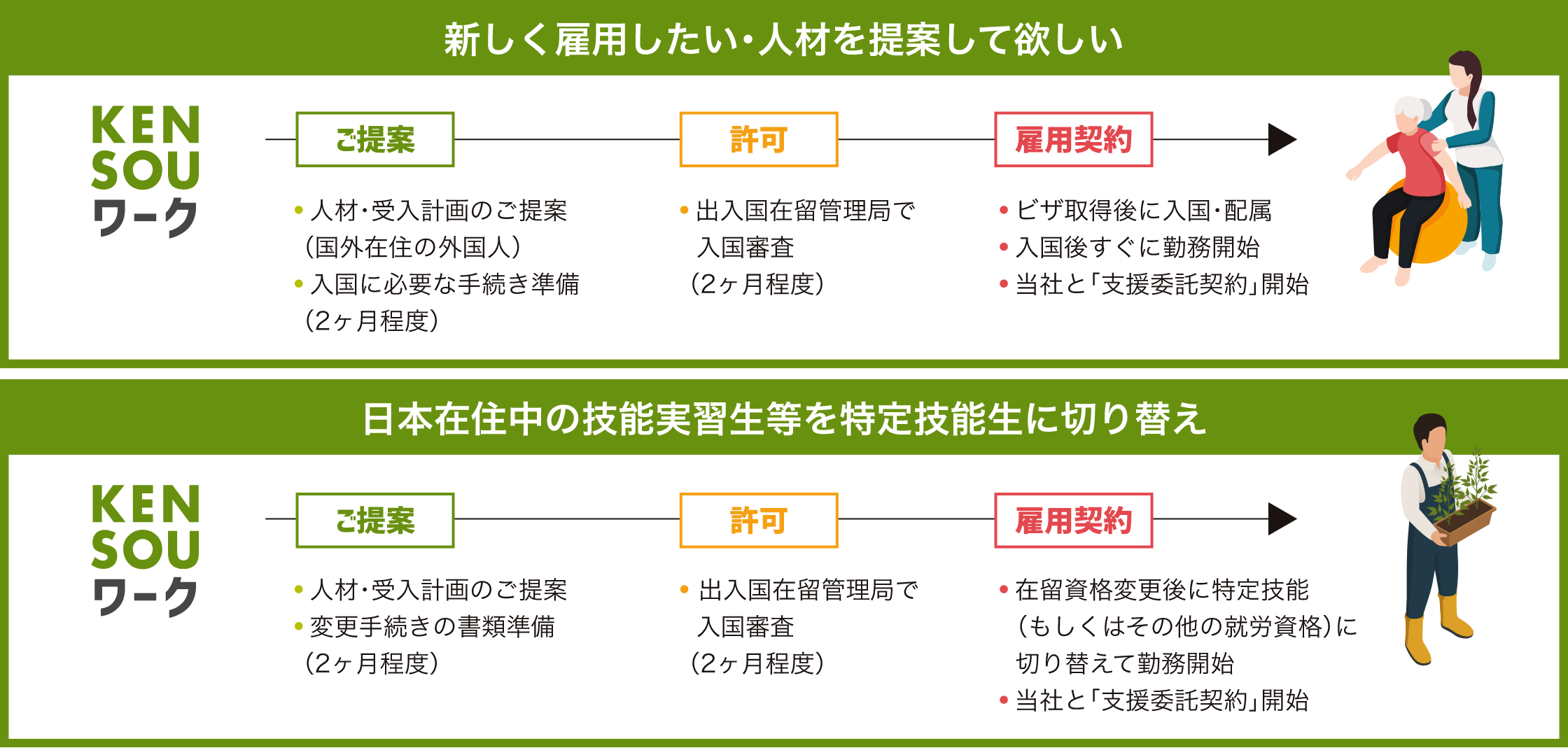 また、KENSOUワーク独自の人材フォロー体制により