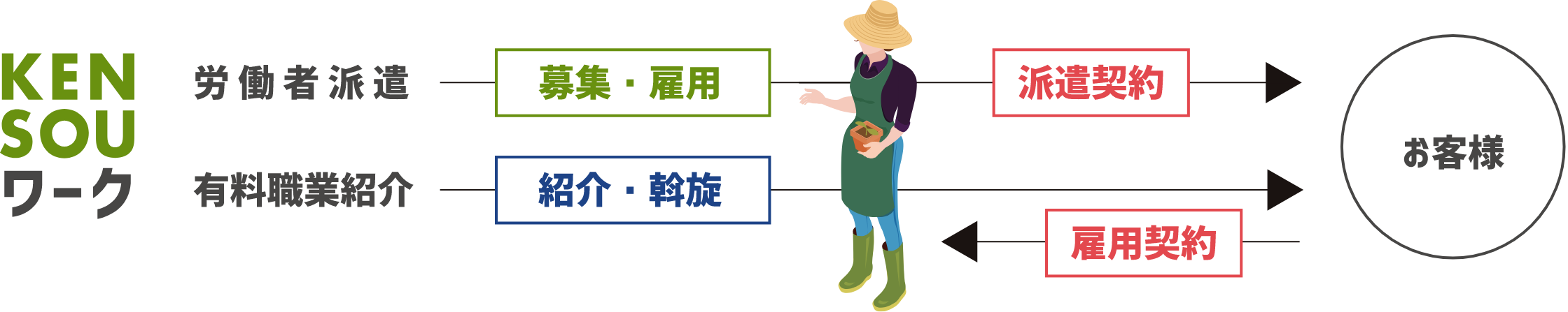 KENSOUワークでは日本人人材の労働者派遣・有料職業紹介も行っております。