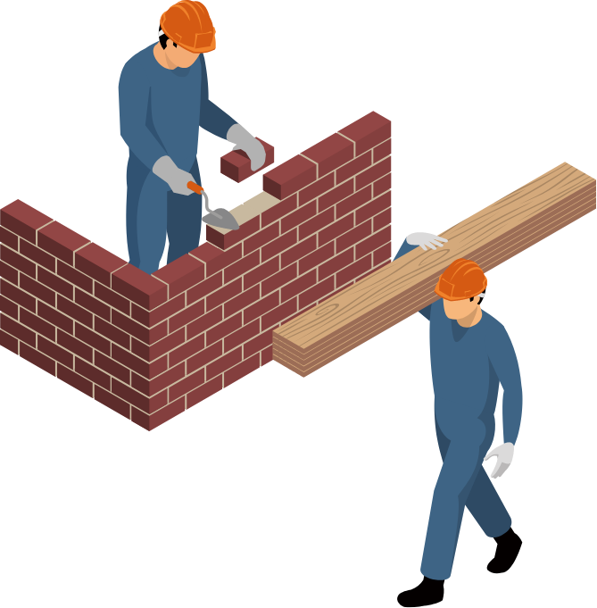 建築大工、鉄筋施工、とび、屋根ふき、左官、内装仕上げ、塗装、防水施工 など
